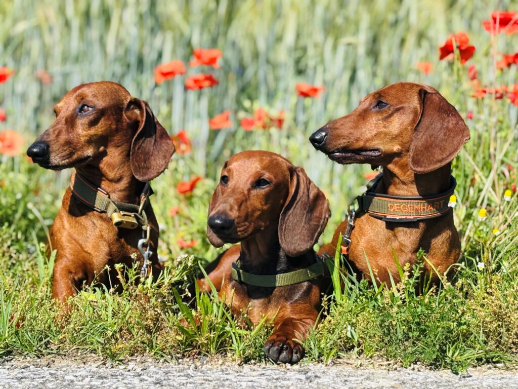 Zur Zeit führen wir drei rote Kurzhaardackelrüden in Standardgröße im Jagdgebrauch und als Begleithunde.
